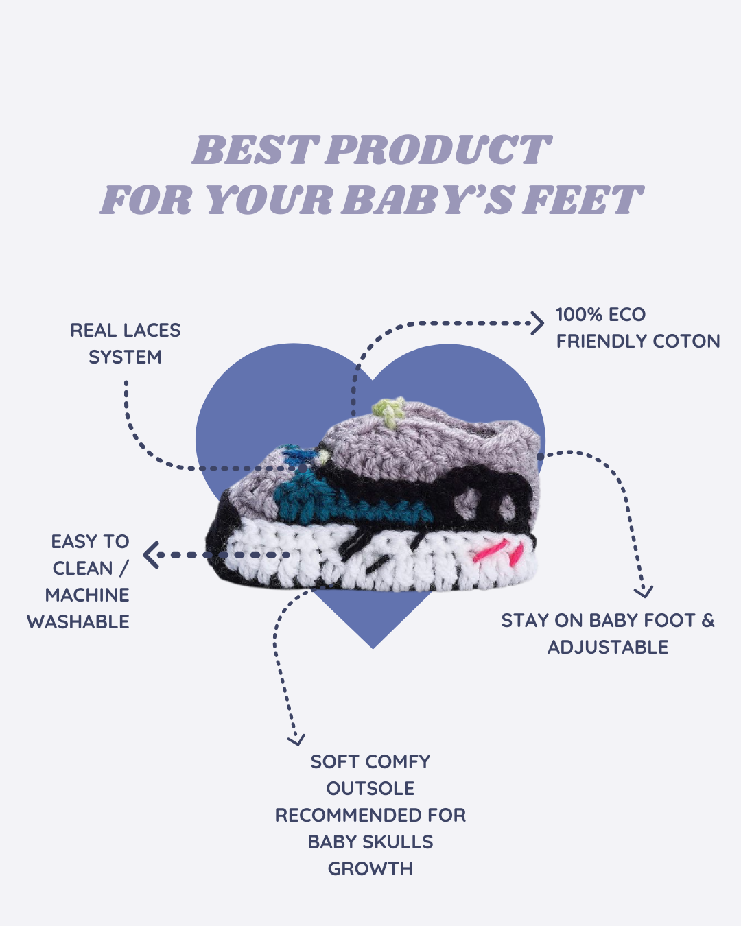 The Idea of fashion baby crochet sneakers came out after our first child born, and desperately looking for unique and cool shoes for baby that match out personality and bring baby the ultimate comfort.